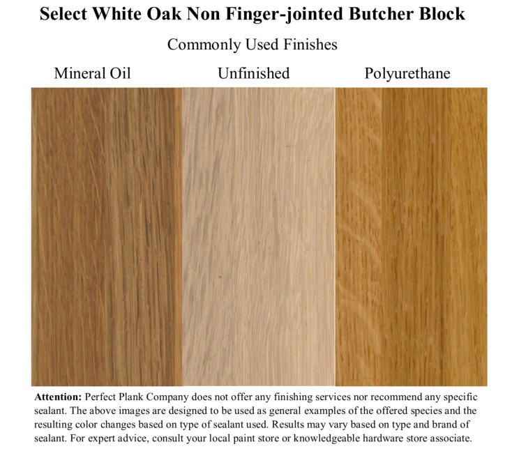 *Oak is not recommended for food prep surfaces, due to its porous grain structure. Customers with Oak